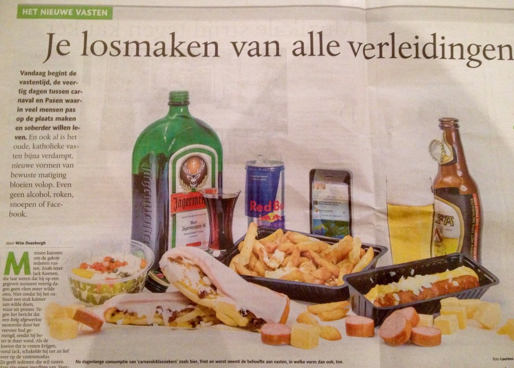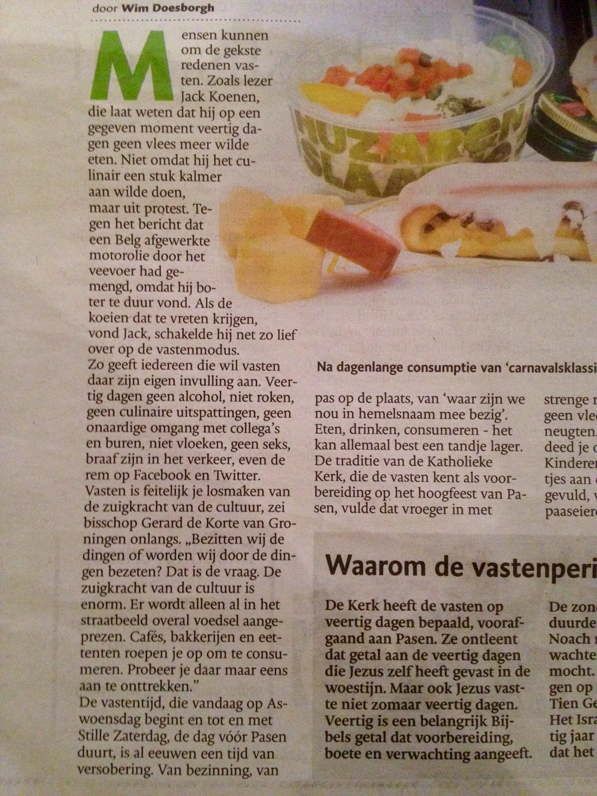 Laat ik nu toevallig vandaag de krant openslaan, met, wat ik vind, een hele goede uitleg over de katholieke vastenperiode die 40 dagen duurt.